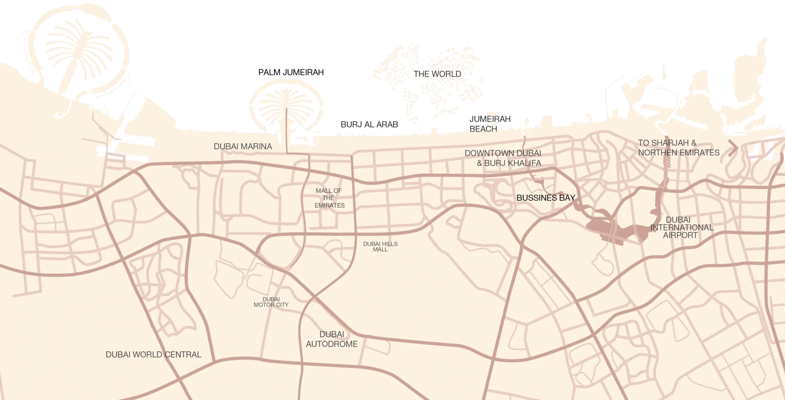 Mohammed Bin Zayed Road (E311) and Al Khail Road (E44), making it simple to commute to different parts of the city.